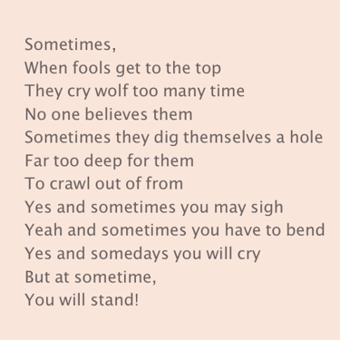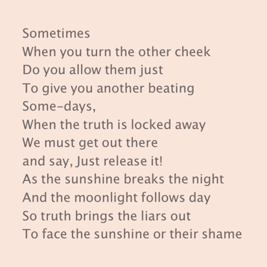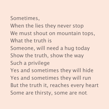 Acoustic Indy folk - Three part vocal harmony chorus to warm you to your toes. Also written in lockdown, asking hard questions and seeking wise answers. Sometimes when its overwhelming it's hard to think straight, to get confused. Are we turning the other cheek for the wrong reason? Sometimes when you're so fed up you just want to shout from mountaintops. Sometimes you may cry, sometimes you may have to bend especially when your family disagrees. Sometimes your friends may run or hide. But as the truth cannot be quarantined it will come out like the sun and turn the darkness away.